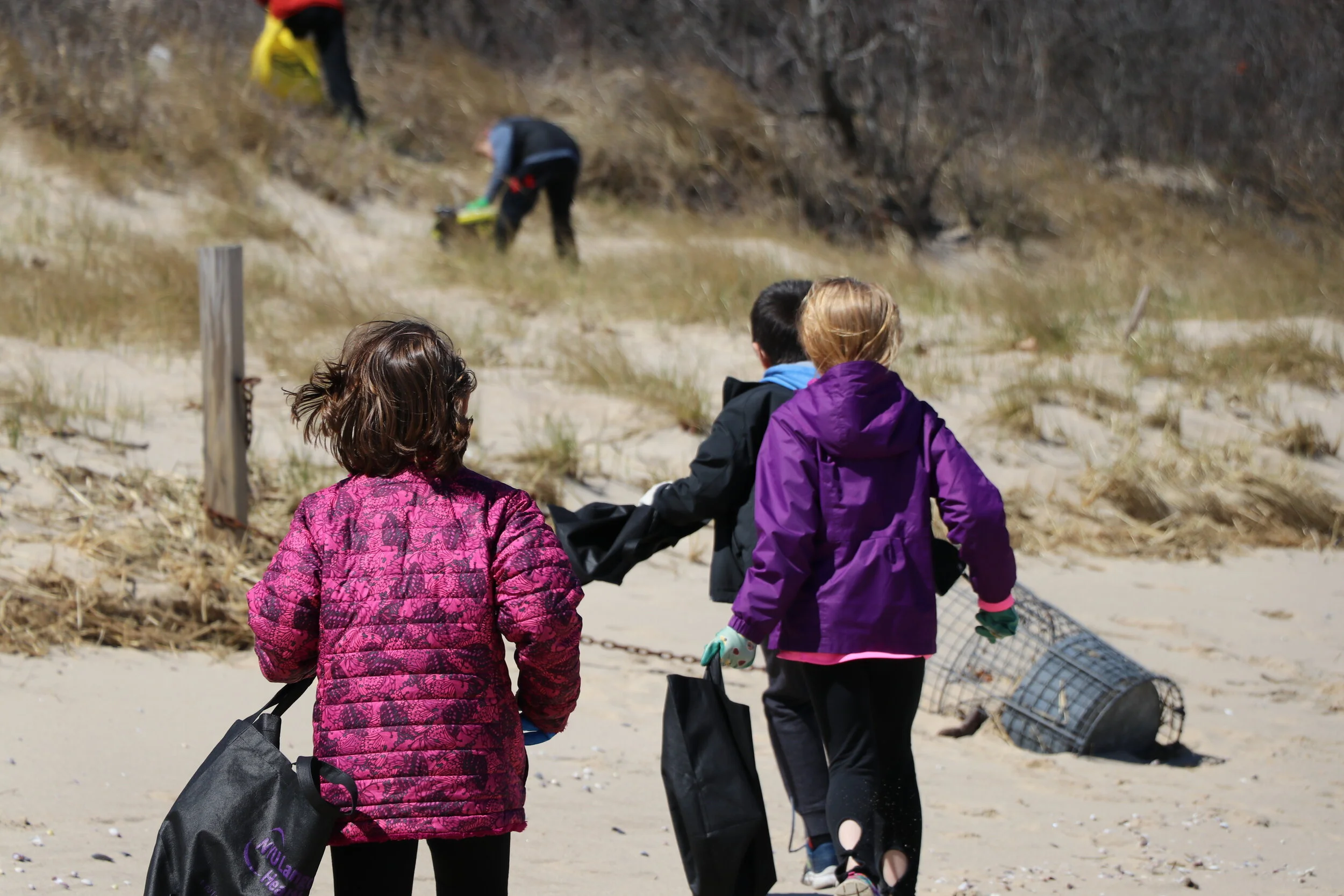 Scouring a Long Island beach for plastic items and microplastic with third graders, in pre-Covid times. Photo: Erica Cirino