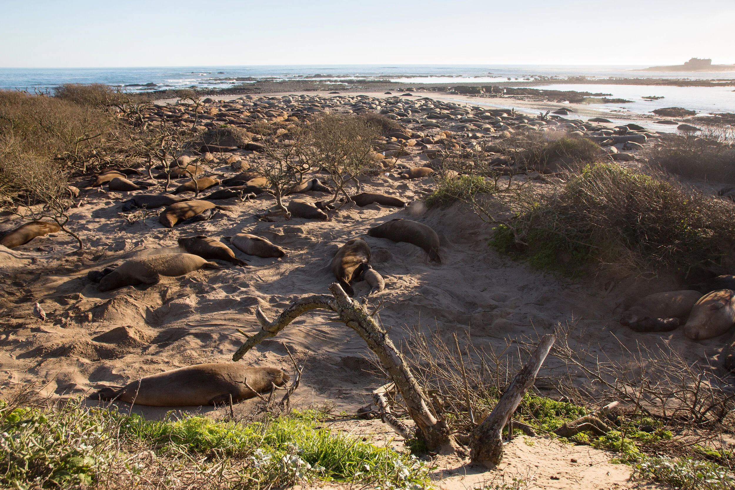 It was easy, too easy, to get distracted by the mass of blubbery bodies spread from the dunes to the water’s edge. Flipping sand to cool themselves in the warm January sun, young males and females enjoyed a well-deserved rest after spending months at sea. Here and there, a pup could be seen snuggling close to its mother, and the enormous adult bulls, with their elephant trunk-like proboscises leading to the name ‘elephant seal’, were scattered among the smaller animals.