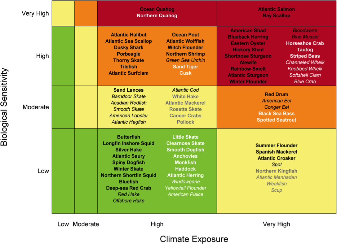 Dr. Jon Hare and his colleagues at the National Oceanic and Atmospheric Administration (NOAA) have just published the results of two years’ work: their first assessment of fish and shellfish species living along the New England coast.