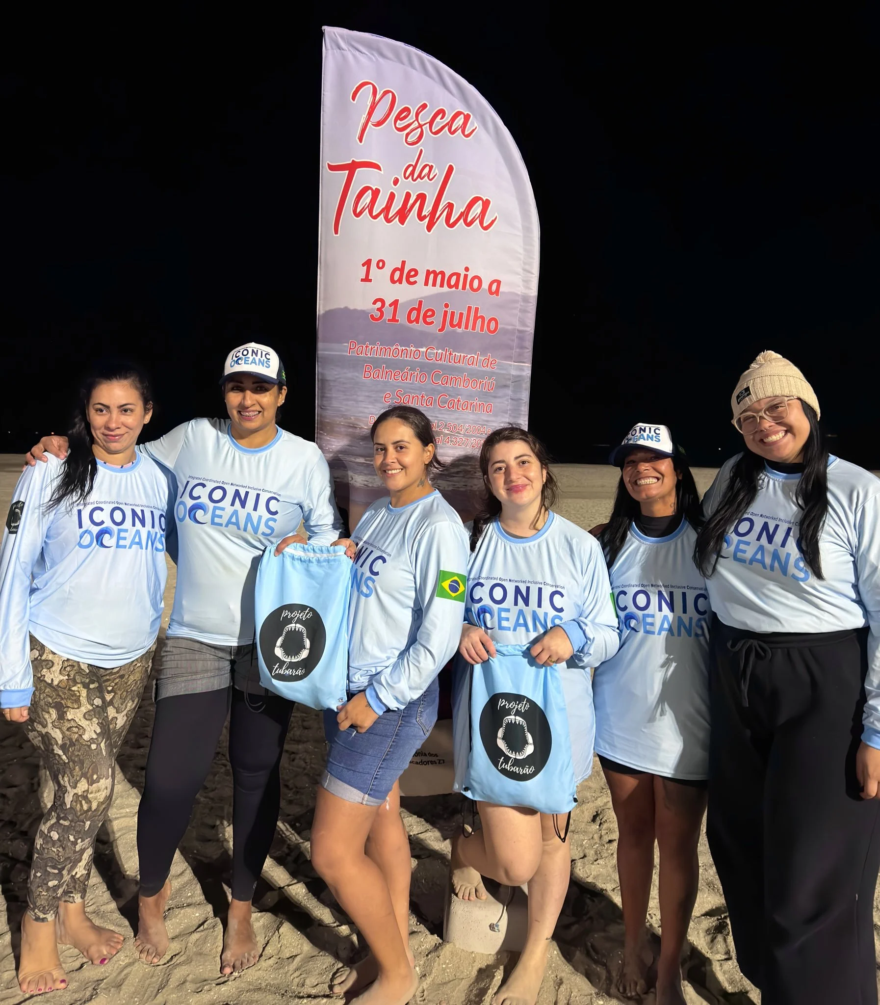 Field Research Lead, Ingrid Hyrycena dos Santos, with some of the women fishers she works with in Brazil in collaboration between Projeto Tubarão and MISS as part of the ICONIC Oceans program. ©Ingrid Hyrycena dos Santos.