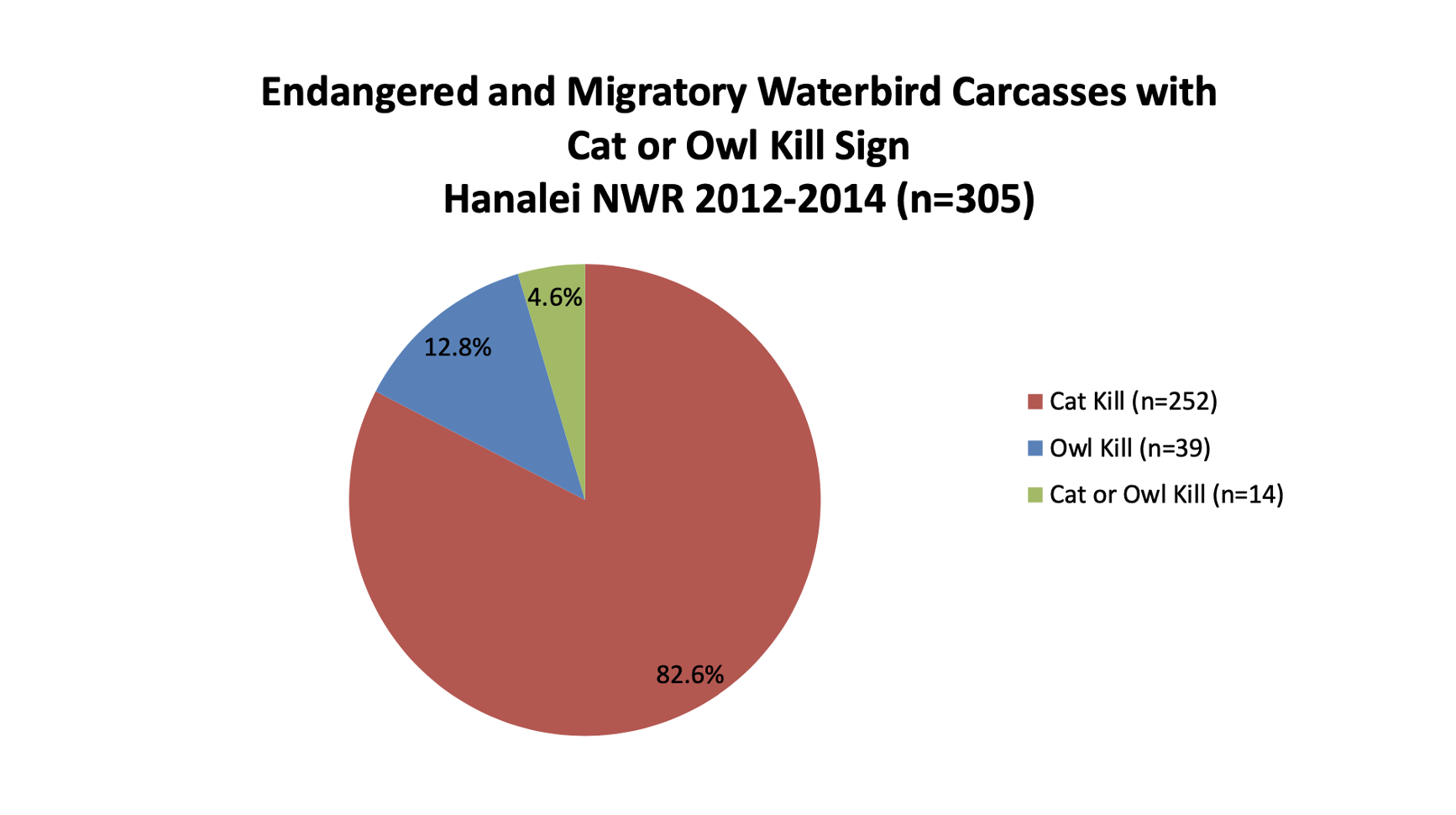 High percentage of predation of endangered wetland birds by cats in Hanalei Refuge
