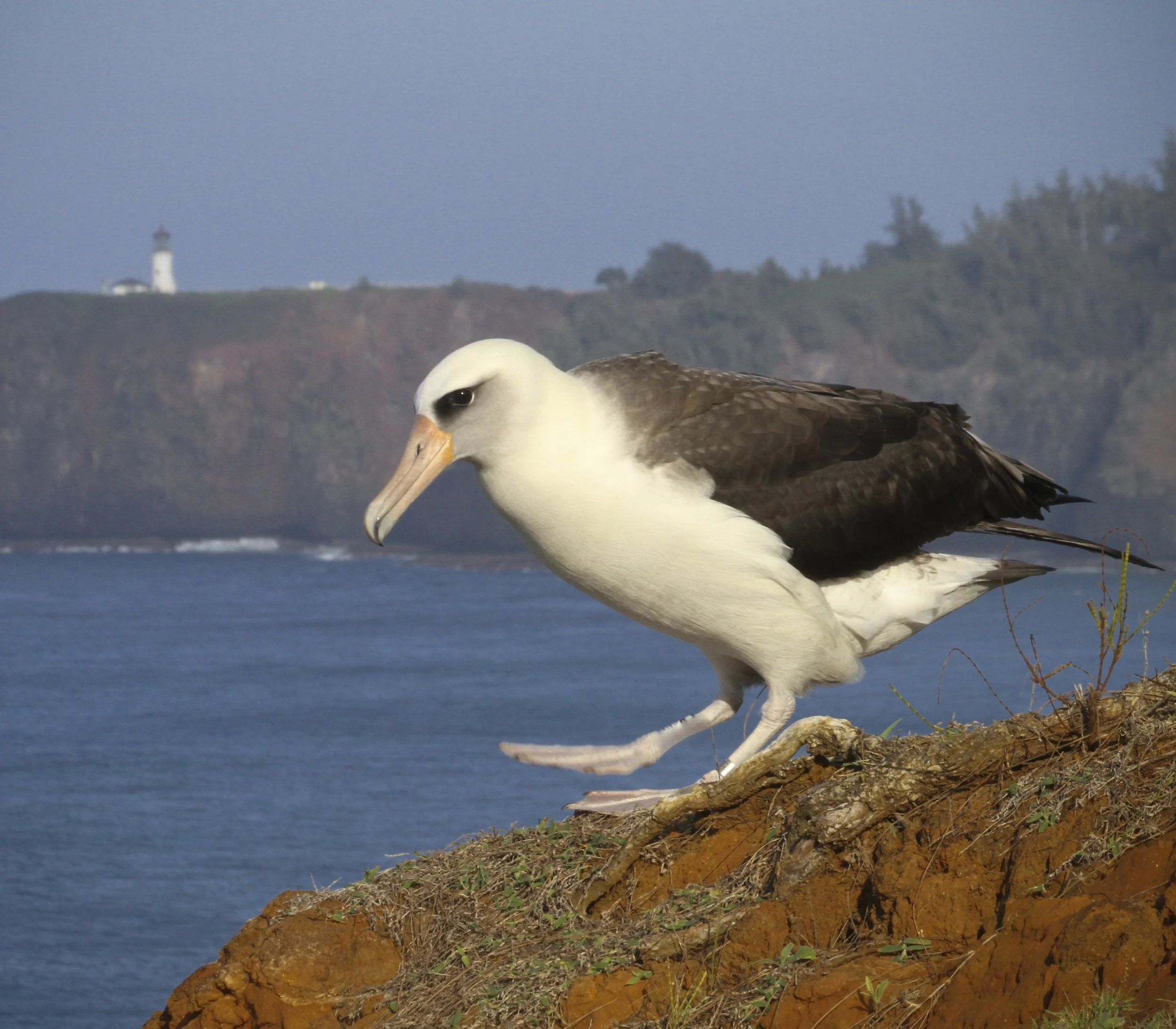 Albatross hiking down a cliff. Photo ©Hob Osterlund