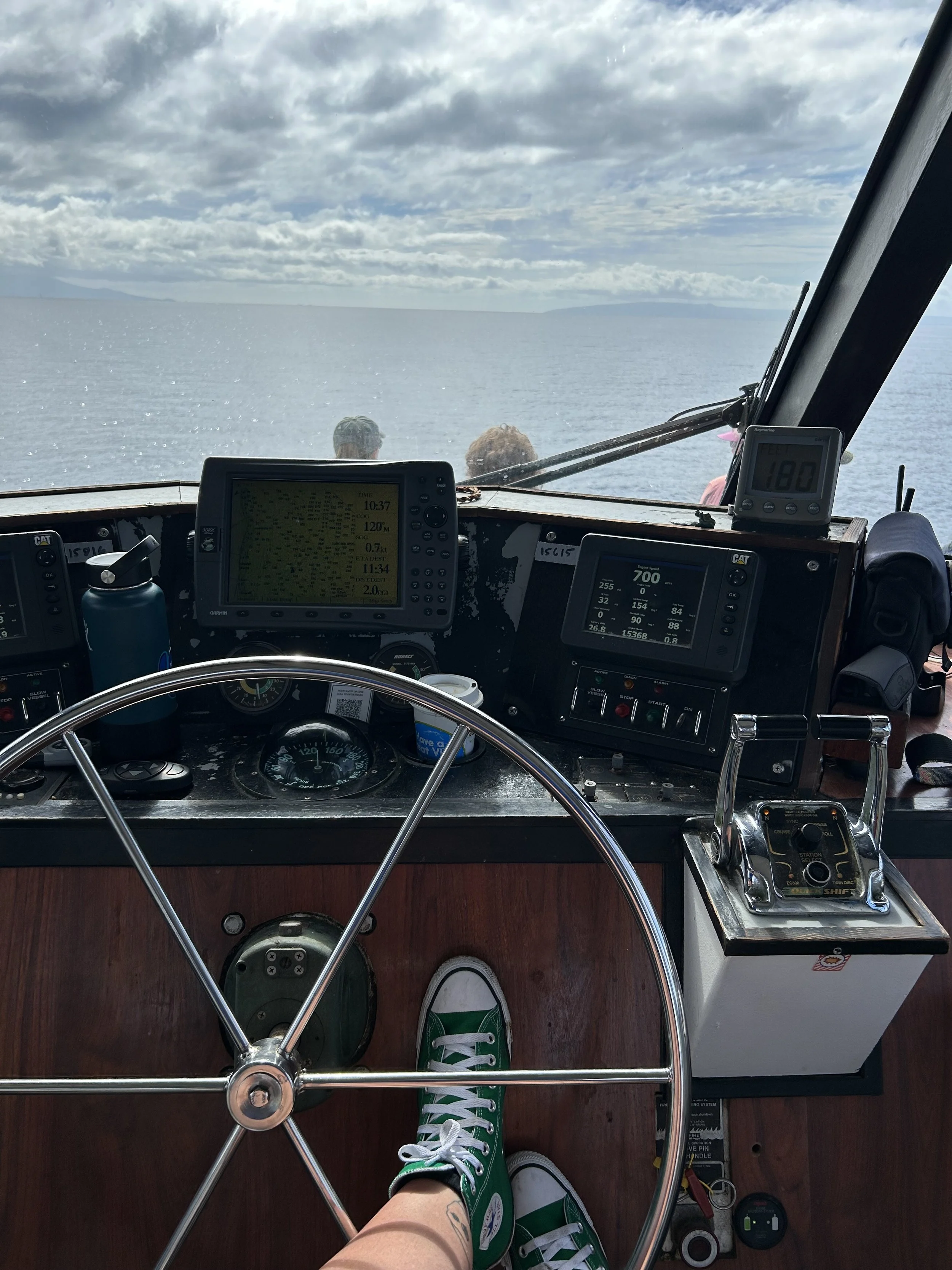 At the helm of Ocean Explorer, Māʻalaea HI. ©Katlyn Taylor