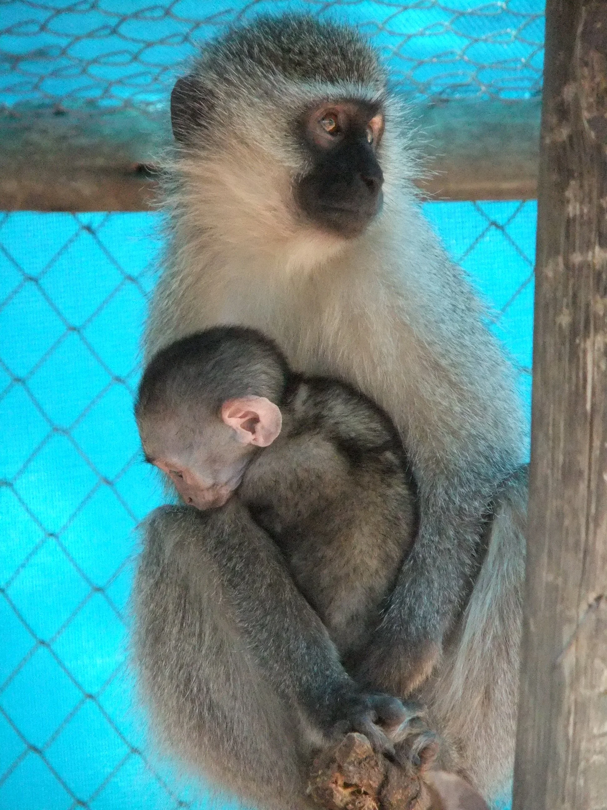 The Vervet Monkey Foundation (VMF) evaluates which troop might be the best match for a new orphan. Factors include troop size, male:female ratio, enclosure capacity, the orphan’s age and sex (some troops are more interested in younger infants, others prefer older), etc. They also assess, depending on the orphan’s behavior; for example, how independent they are or if they’re in need of a foster mom who will bond with them very closely if they’ve suffered excessive trauma.