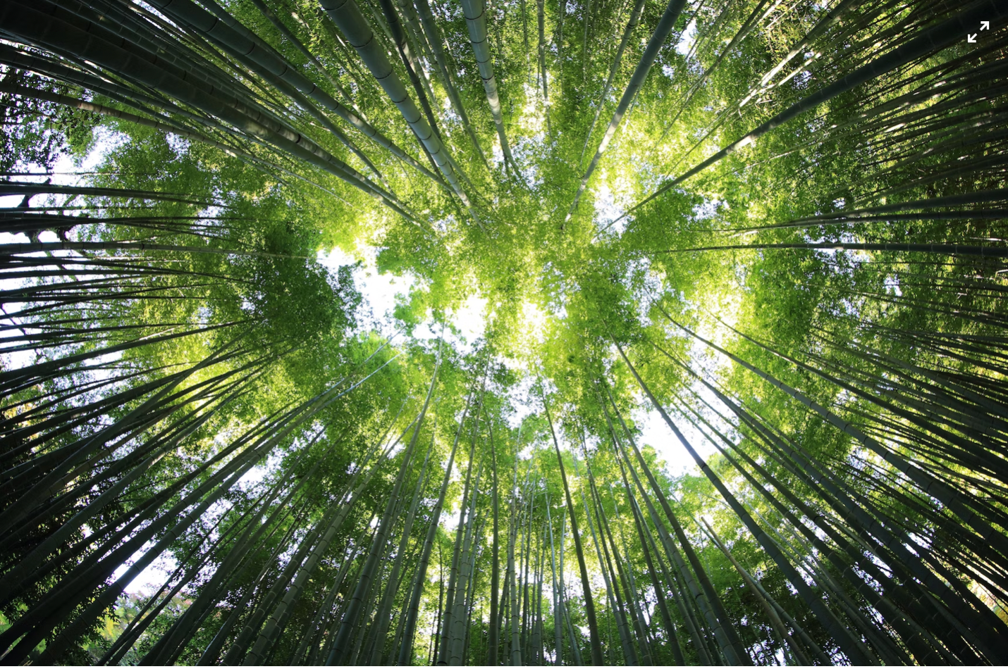 Looking up at the the forest canopy. Being in a forest causes our blood pressure to drop. Photo © Jeremy Bishop on Unsplash.