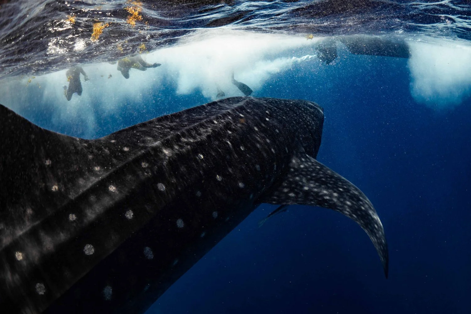 Whale sharks are covered in protective mucus, which can be compromised by touching. Sunscreen and other skin products can also do damage to the whale shark.