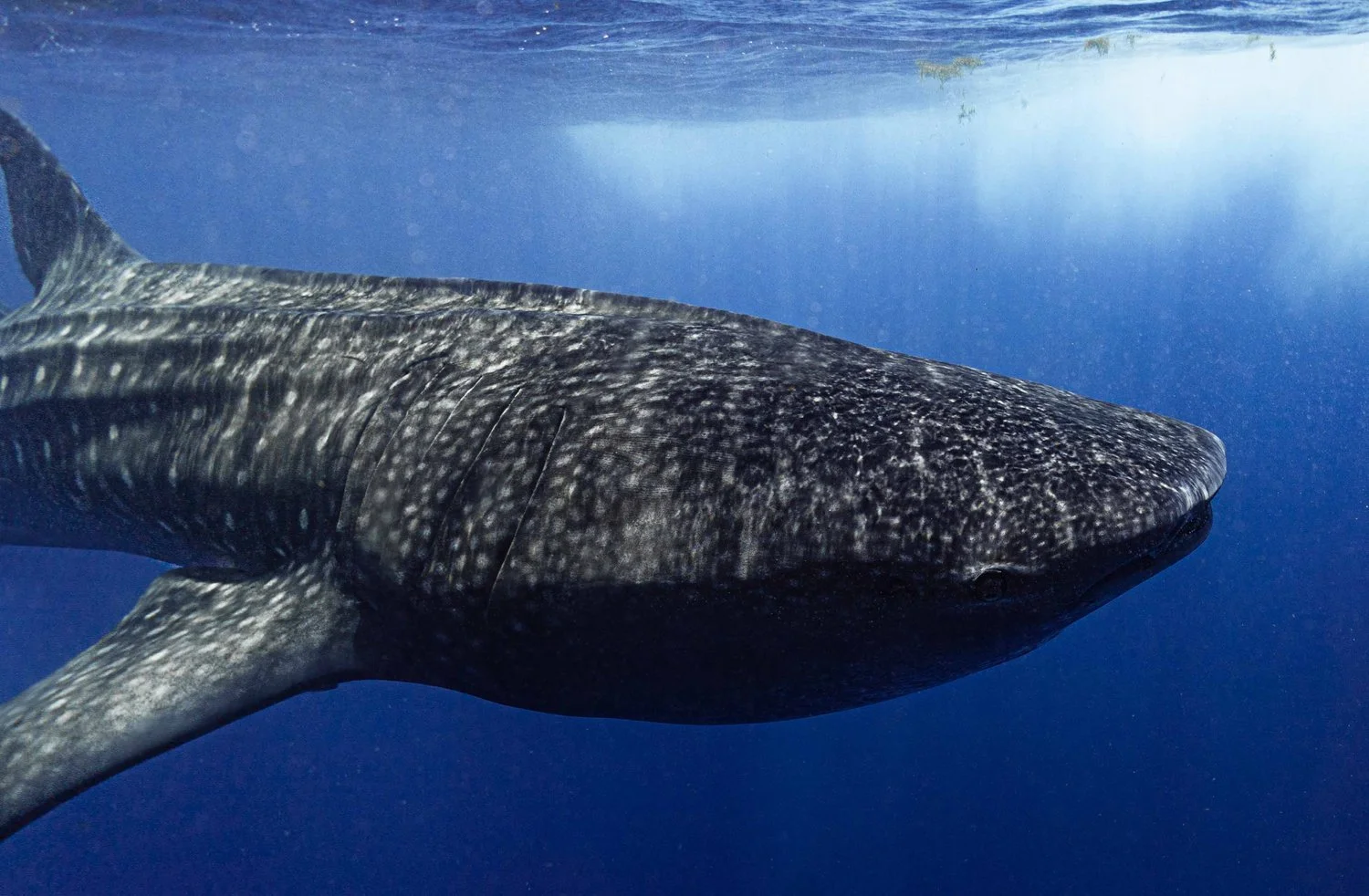 Whale sharks can reach the size of a school bus, making them the largest fish (they are more shark than whale) alive. Their patterns are like fingerprints—each is unique. They are ancient—over 60 million years old. A female whale shark can give birth to 300 babies at once and they can live up to 150 years.