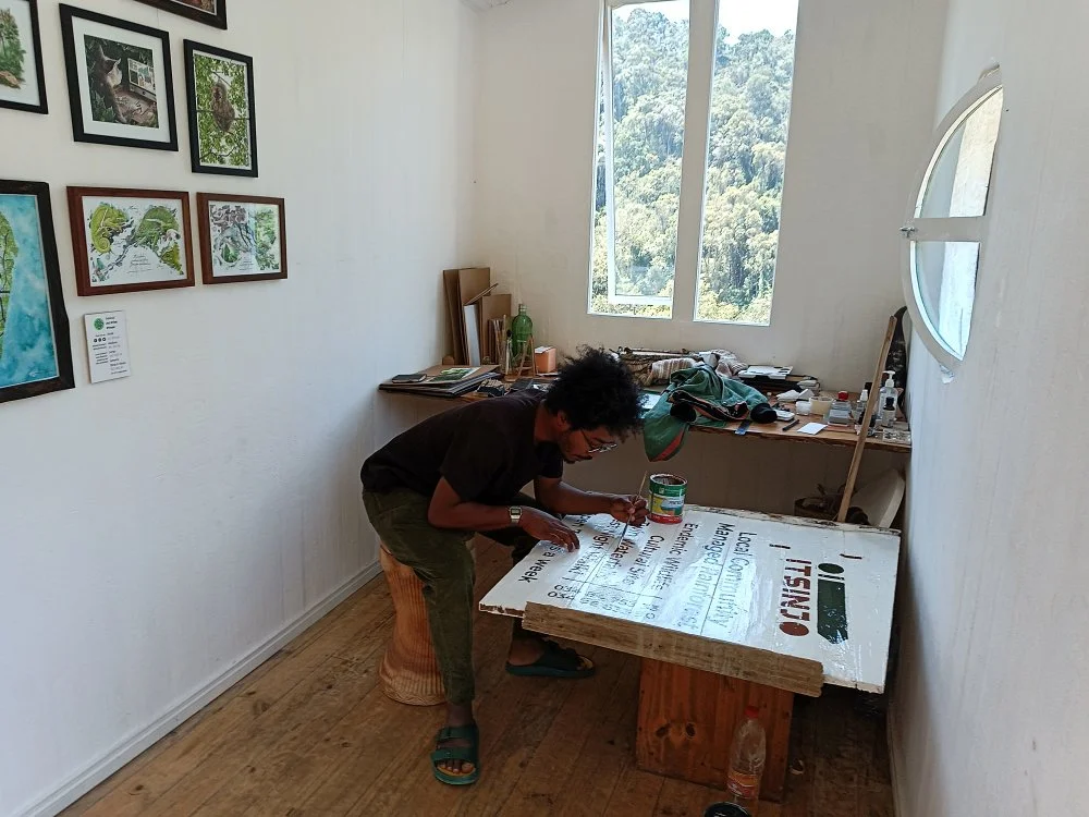 Painting the content of the sign at the oloNala studio/gallery. ©Alain Rasolo