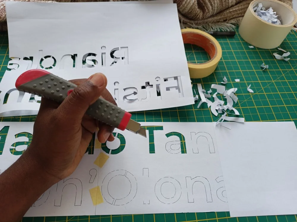 Making cut outs of the information before transferring them to the sign. ©Alain Rasolo