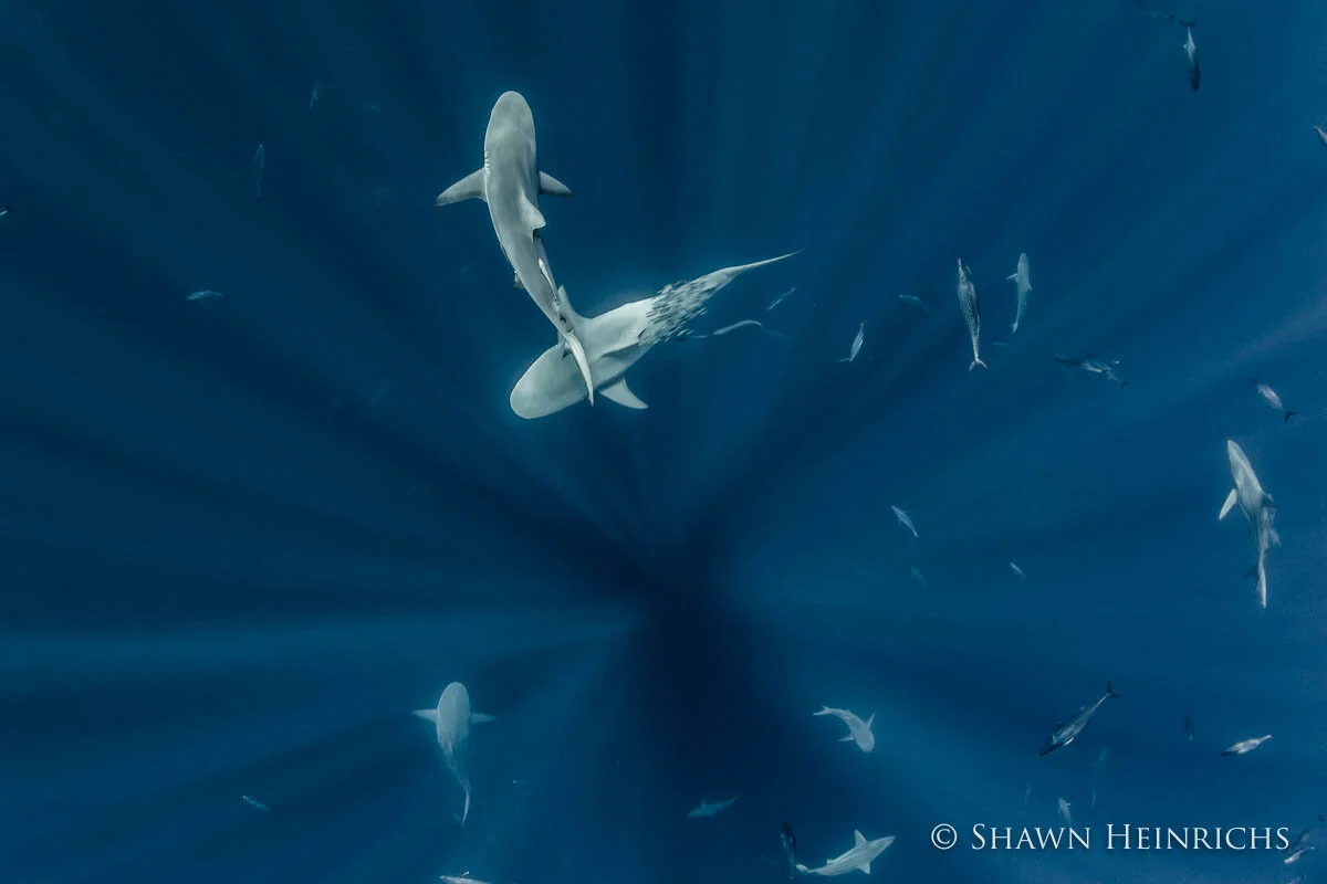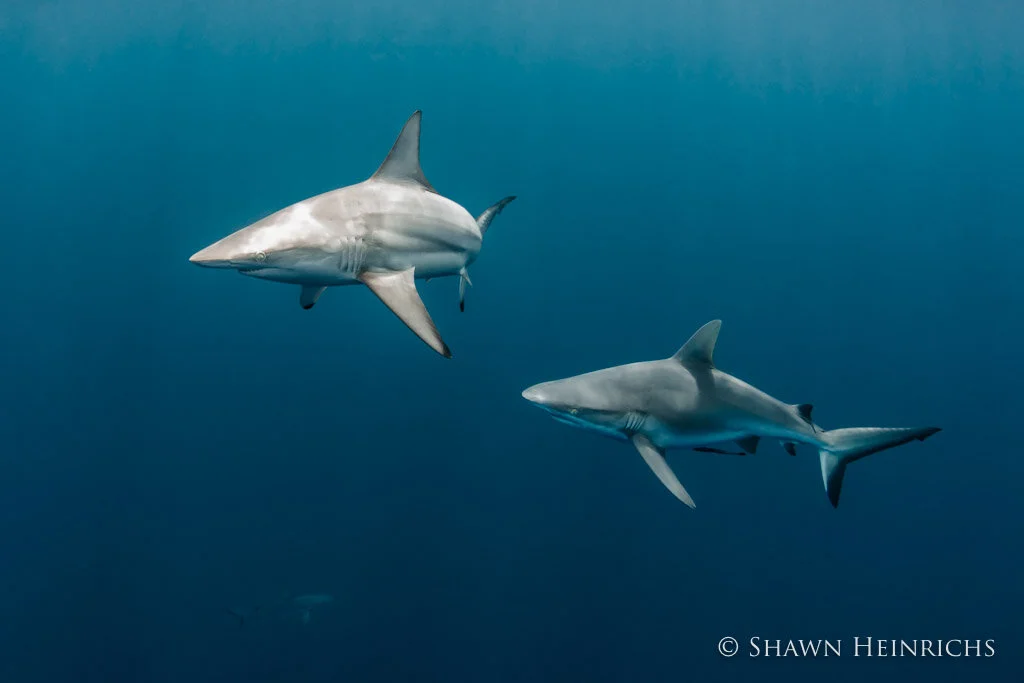 Oceanic blacktip and grey reef sharks come in for a closer look