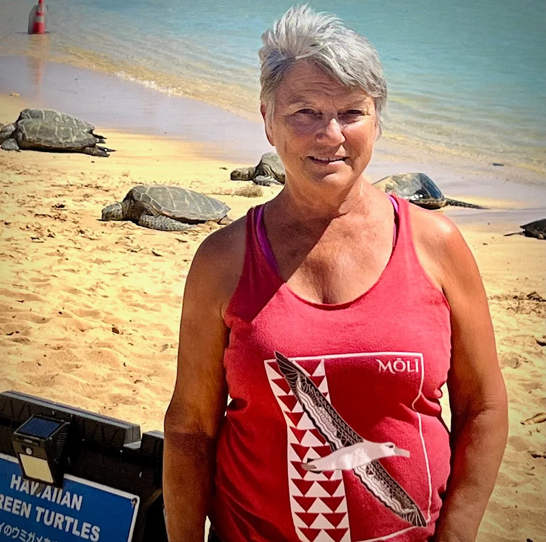 Lynn Bowen at green sea turtle haul out, Po’pu. ©Dan Bowen