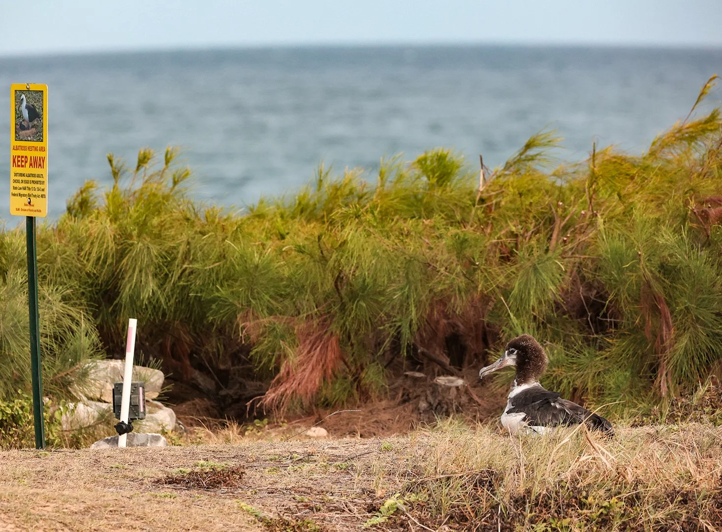 Never in recorded history has there been a successful mōlī nest in Poʻipū, or anywhere on the south shore. Locals report having seen albatross in flight and in courtship on the ground. But no one (so far) could remember a chick growing up there.