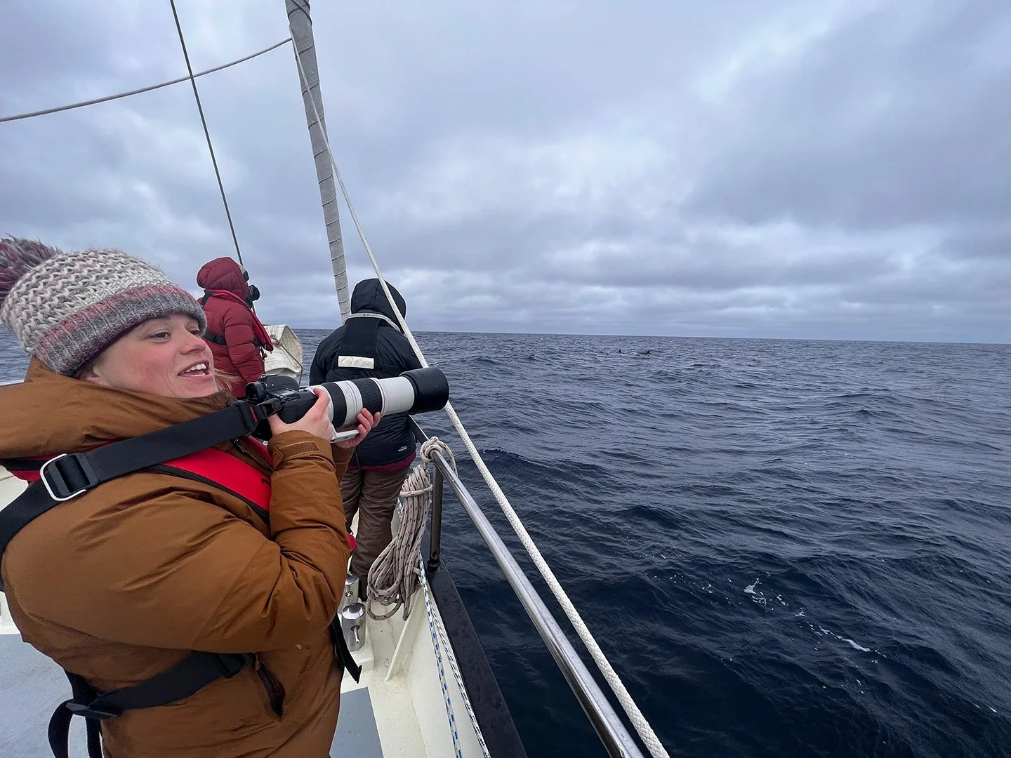 We can't believe how lucky we were to have had these incredible encounters with these elusive animals. Despite rough seas and the time of year, bottlenose whales were encountered on 10 occasions. These sightings finally confirm the presence of these whales in this area. These rare events provide very valuable information for the ongoing research on bottlenose whales. Other groups were sighted the same day. The presence of diving birds and behavior exhibited by the whales suggest that the whales may be feeding close to the surface—a behaviour never reported before in these areas. Often, the whales were extremely curious with our towing hydrophone, following the boat, apparently checking out the towing line. We managed to filter the water samples for eDNA analysis—likely the first samples of this kind in this region.