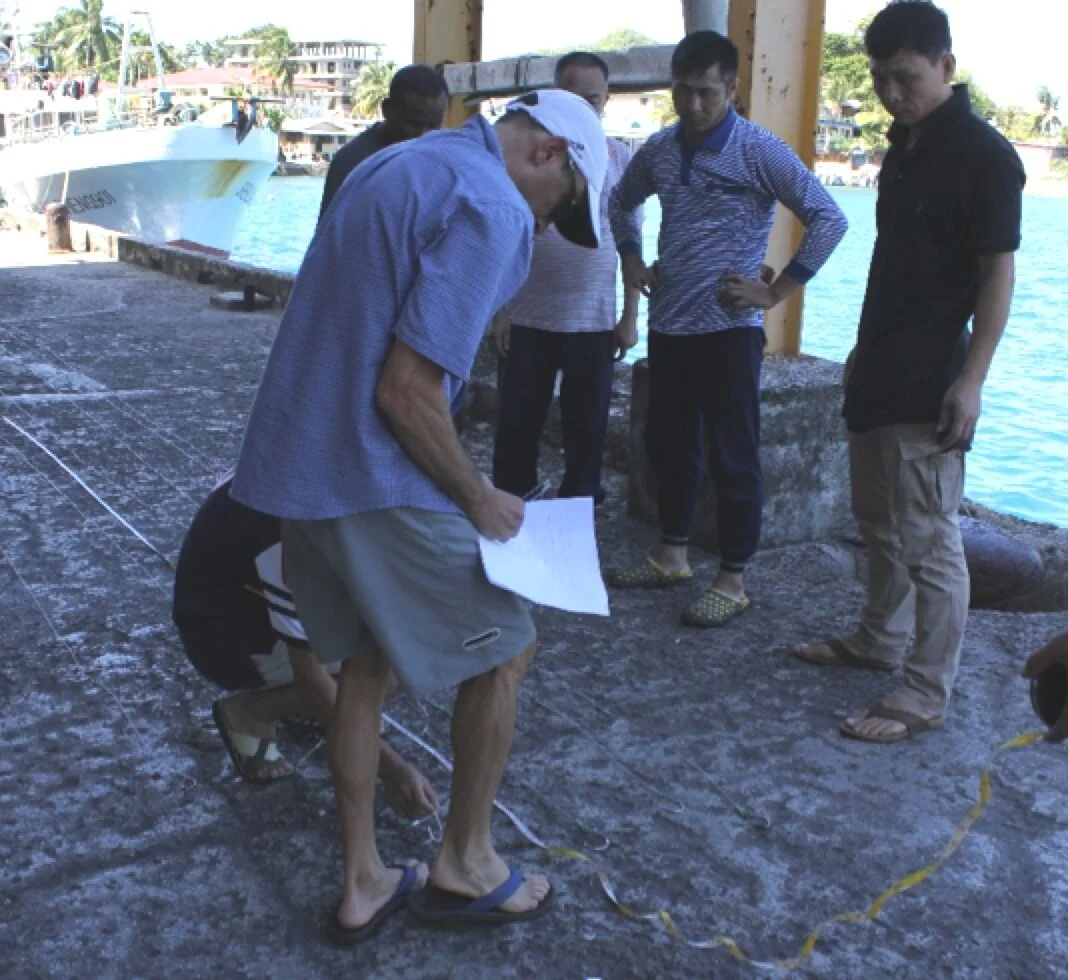 Gilman, conducting a dockside inventory of a longline vessel’s gear, as part of an ecological risk assessment. Photo: Eric Gilman