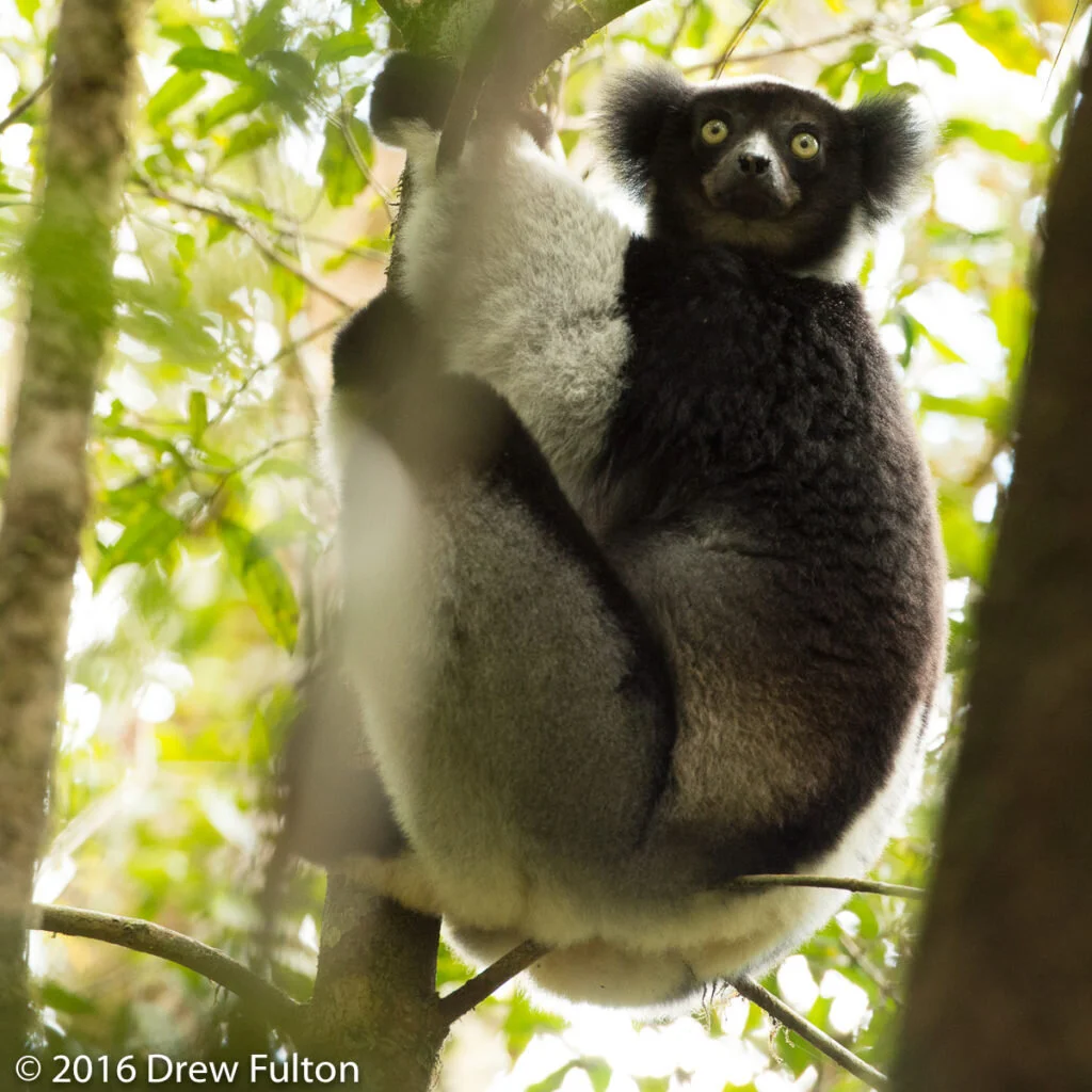 Malagasy legends say the Indri is the father of mankind. The name “Babakoto,” or Ancestor of Man, comes from a story of a young boy traveling in the rainforests of eastern Madagascar. He climbed a high tree to gather honey, and a passerby cut the vines so he couldn’t come down. Just when it seemed the poor boy’s fate was sealed, an indri lemur came swinging through the trees and helped him climb down from the canopy.