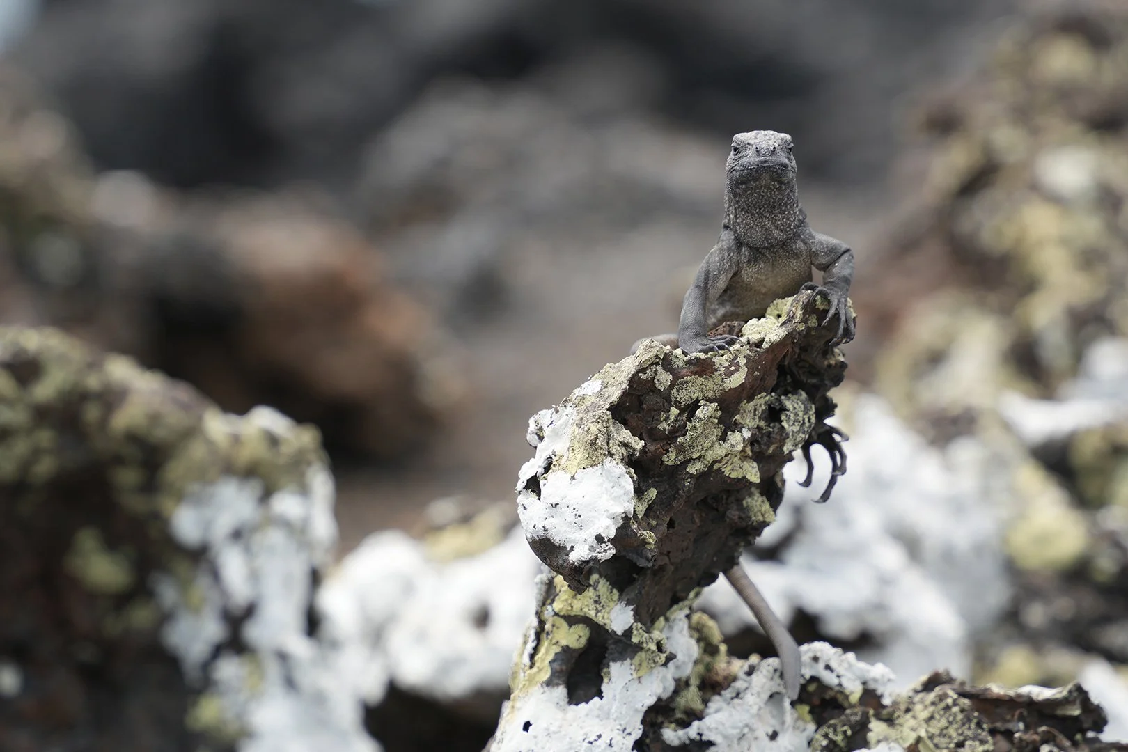 A juvenile marine iguana sits atop the lava-rock formations on Isabela island. ©Marlowe Starling